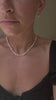 Freshwater pearls strung on white silk thread, on our signature 18k yellow or white gold bolt clasp